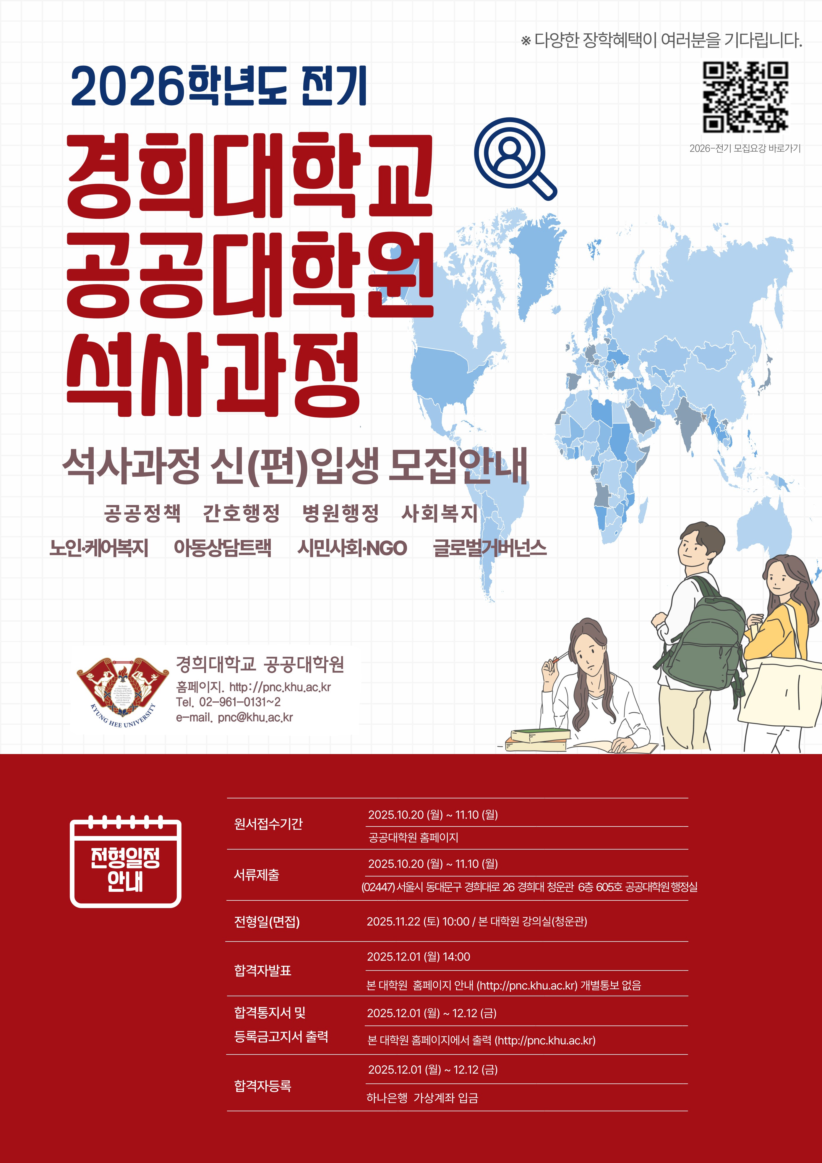 2026학년도 공공대학원 전기 석사과정 신·편입생 모집 홍보