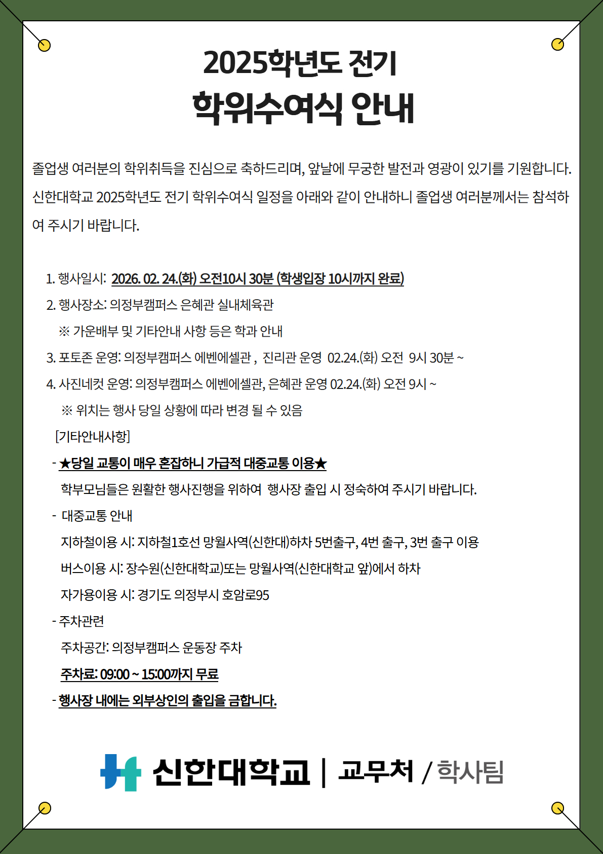 [교무처/학사팀] 2025학년도 전기 학위수여식 안내
