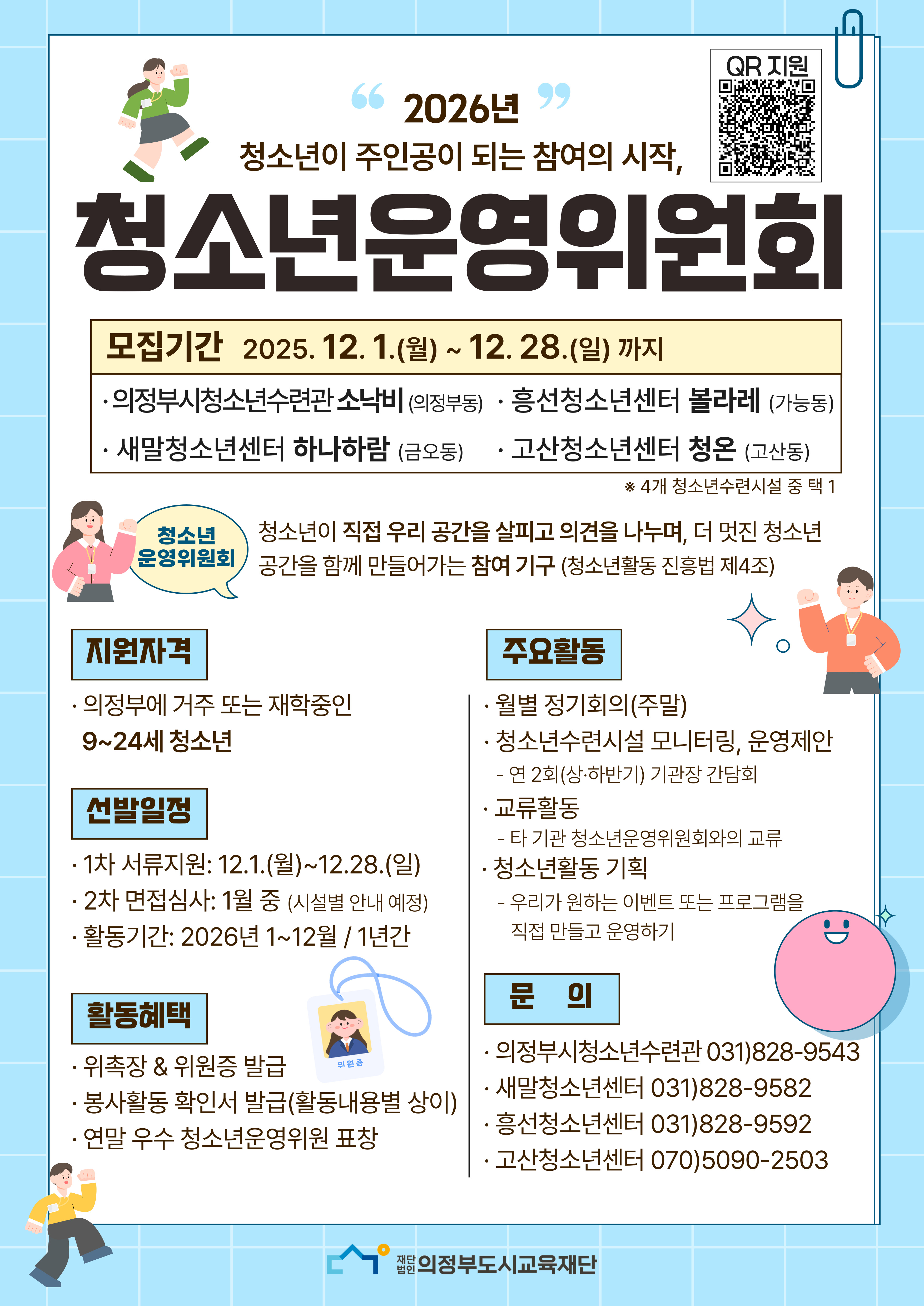 2026년 의정부도시교육재단 「청소년운영위원회」 모집 재안내