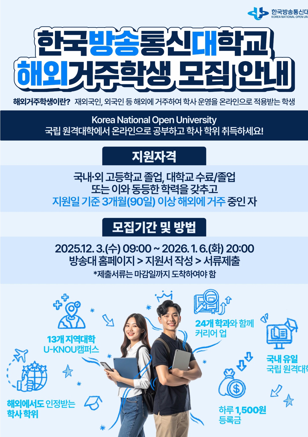 2026학년도 1학기 국립 한국방송통신대학교 학생 모집 안내